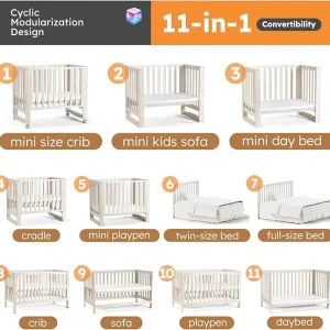 11-in-1 Convertible Design: Easily transforms from a newborn crib to a toddler bed, daybed, playpen, desk, and more