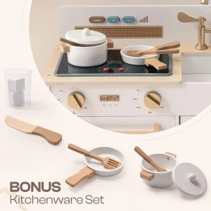 Storage-Friendly Design – Shelves and cabinets help keep pretend foods, pots, and utensils organized.